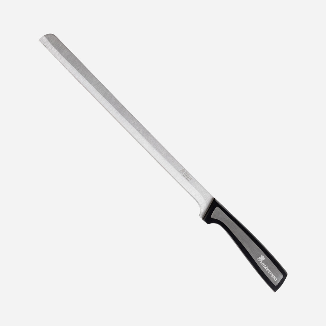 Master nož za pršut sa oštricom dužine 26 cm predstavlja vrhunac u ponudi. Namenjen je istinskim znalcima i profesionalcima koji žele apsolutnu kontrolu i besprekoran rez. Precizno oblikovana oštrica vrhunskog kvaliteta omogućava rezanje najfinijih i najujednačenijih listića, čineći svaki zalogaj pravim gurmanskim užitkom. Ovaj nož je obavezan izbor za sve koji žele najbolje od najboljeg.