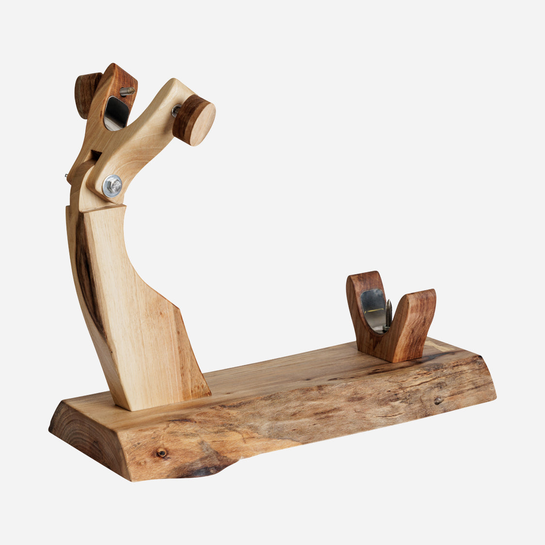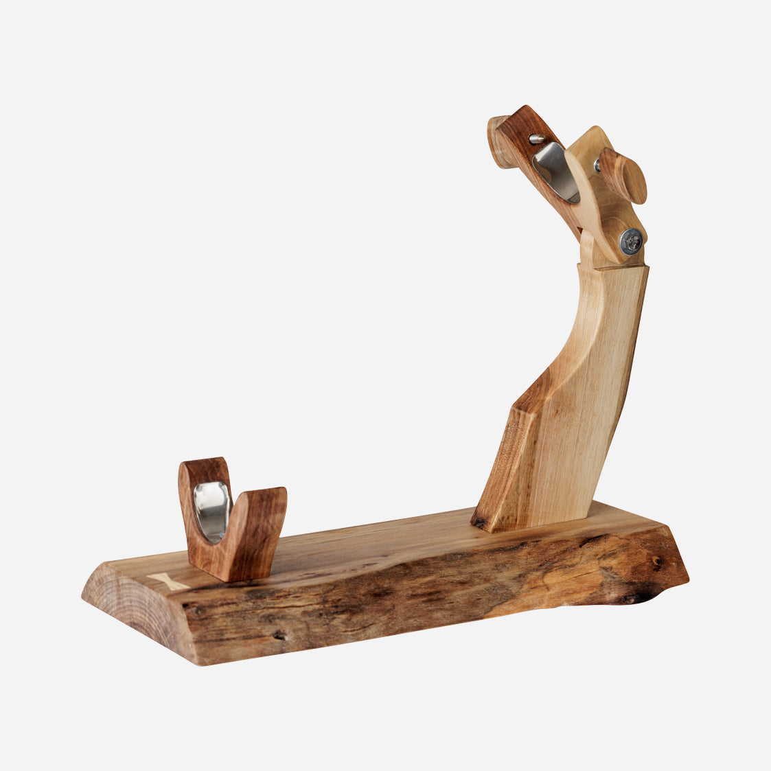 Ručno izrađen stalak od punog orahovog drveta donosi spoj elegancije i funkcionalnosti. Sa pažnjom oblikovan do najsitnijeg detalja, pruža izuzetno stabilnu i sigurnu potporu za sečenje pršute, čineći svaku degustaciju pravim užitkom. Njegova prirodna tekstura i topla boja oraha daju mu luksuzan i sofisticiran izgled, dok praktična premium kutija za prenos omogućava lako i bezbedno odlaganje ili transport.